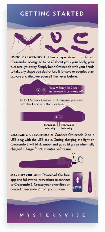 Crescendo 2’s slim, long, multi-bend design helps reach areas that need stimulation delivering soothing vibration that supports arousal & closeness during intimacy.